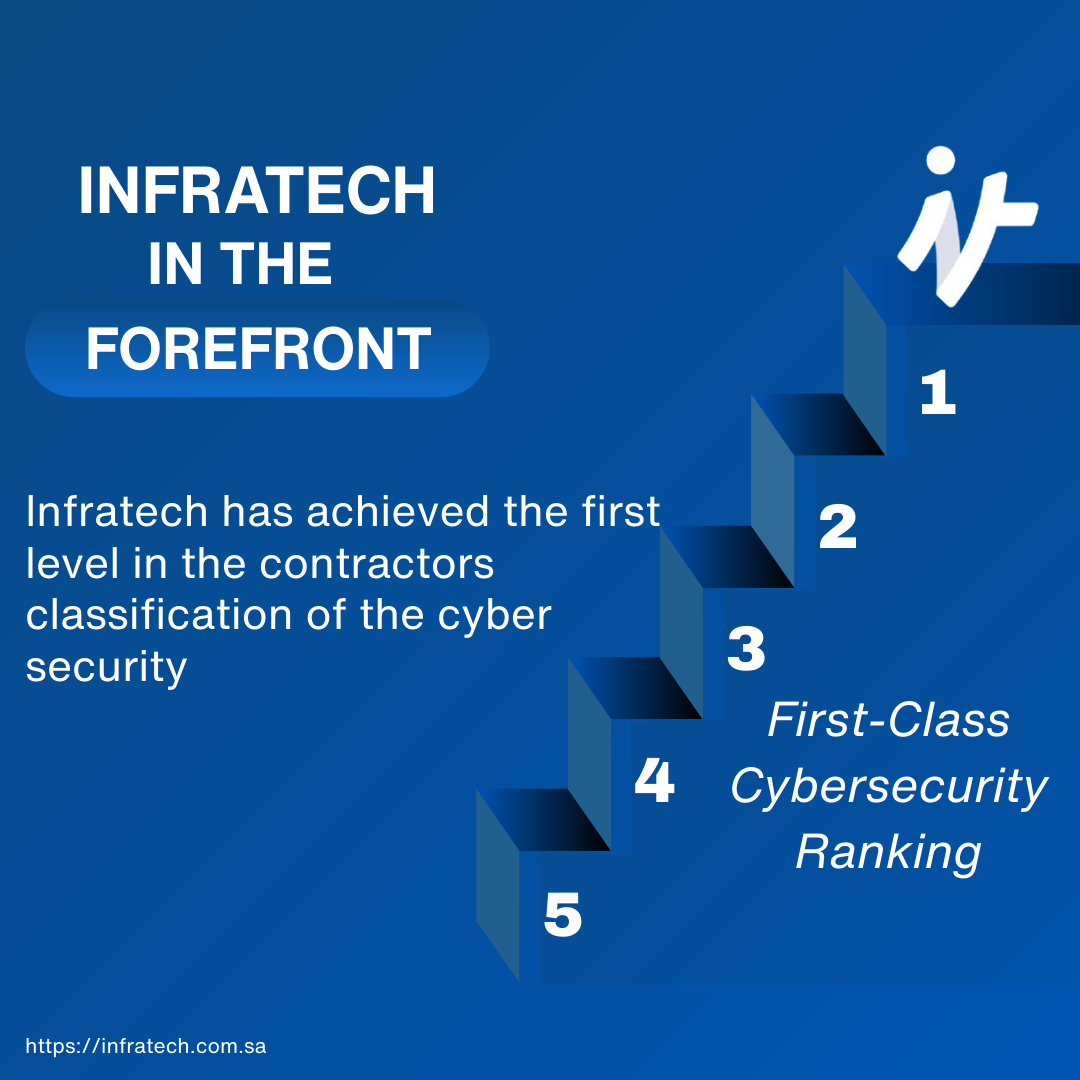 This prestigious designation reflects Infratech’s outstanding performance across two key areas: technical competence, as assessed by the National Cybersecurity Authority (NCA), and financial strength, as verified by accredited credit rating agencies. The First-Class ranking places Infratech among the top cybersecurity and IT partners qualified to execute high-value, critical national projects in Saudi Arabia.