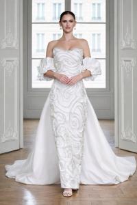 Designer Sara Onsi introduced her collection “The Arrival,” a narrative centered on personal transformation and the reclaiming of individual identity. Diana Caramaci presented pieces combining sculptural construction with couture craftsmanship, producing garments functioning simultaneously as fashion and wearable art. Saudi-based designer Sara Almahlsi presented an eveningwear collection defined by refined silhouettes and strong red-carpet presence. The runway again featured Iuliia Bazhan, whose participation reflected the ongoing interaction between fashion culture and broader social conversations.