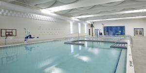 At the heart of the facility is an ADA-accessible aquatic center spanning more than 8,000 square feet, featuring a temperature-controlled, zero-entry pool, and a 12,900-square-foot gymnasium with a stage for performing arts and a climbing wall.